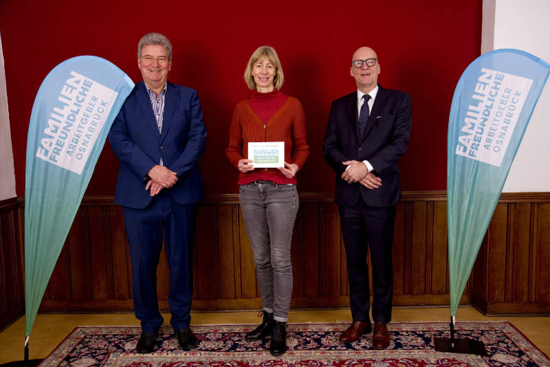 30 Unternehmen haben sich erfolgreich um das Zertifikat beworben, teilt die Stadt Osnabrück mit. Osnabrücks Erster Stadtrat Wolfgang Beckermann sagte bei der Verleihung im Piesberger Gesellschaftshaus: „Sie als familienfreundliche Arbeitgeber wissen, dass Mitarbeitende nicht nur als Arbeitskraft zu sehen sind, sondern als Menschen, deren private Belange ebenfalls einen hohen Stellenwert einnehmen.“ Das Zertifikat „Familienfreundliche Arbeitgeber in der Region Osnabrück“ ist im Arbeitskreis „Unternehmen im Familienbündnis“ Osnabrück entwickelt worden. Darin sind kleine, mittlere und große Betriebe vertreten. Entscheidend für eine familienfreundliche Unternehmenspolitik ist, dass familienbewusste Angebote in der Unternehmenskultur fest verankert sind, von der Führung mitgetragen und auch im Betrieb gelebt werden.